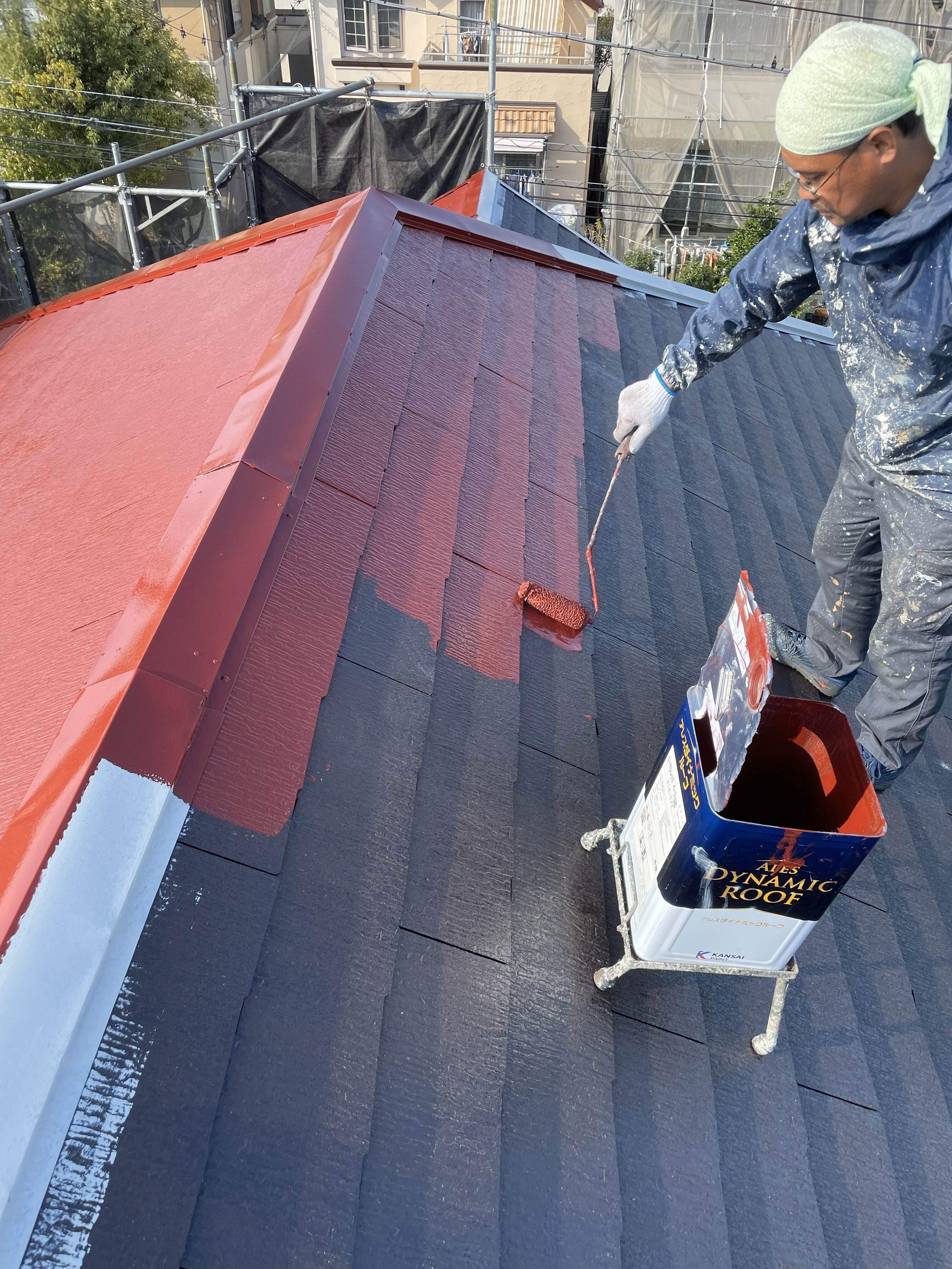 外壁屋根共に2液型ラジカル制御型シリコン樹脂にて仕上げ塗装施工しました。